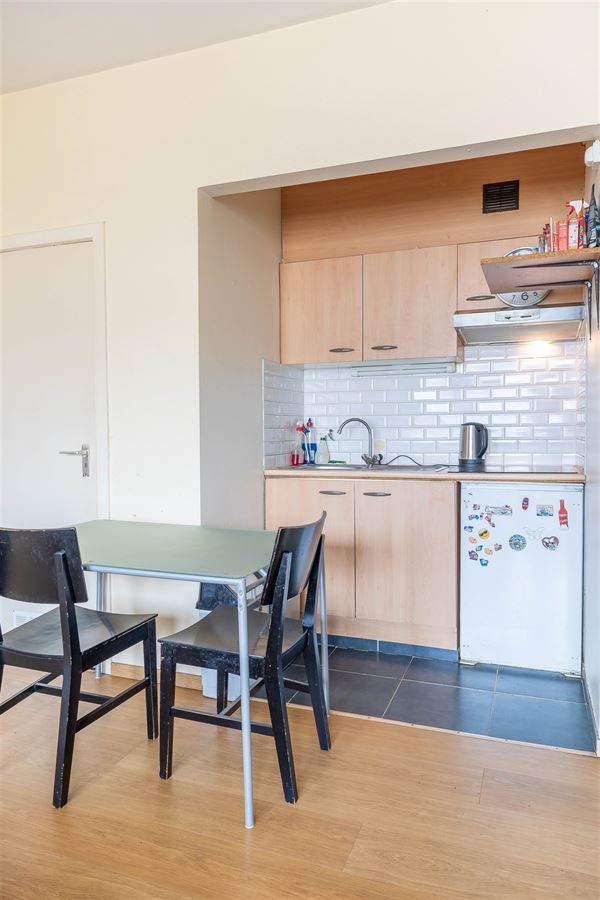 Property One offers you this 45 m² studio located just steps away from Place Stéphanie, in a sought-after area of Saint-Gilles. Positioned at the rear of the building, it enjoys peace and quiet with a west-facing orientation. The layout includes an entrance hall with built-in wardrobe, a separate toilet, a bright living area spacious enough for a sleeping corner, with a fitted kitchen set back into a niche, and a shower room with space for a washing machine. A private cellar is included. The studio needs refreshing, but no major work is required making it an ideal opportunity for investment or a first home.