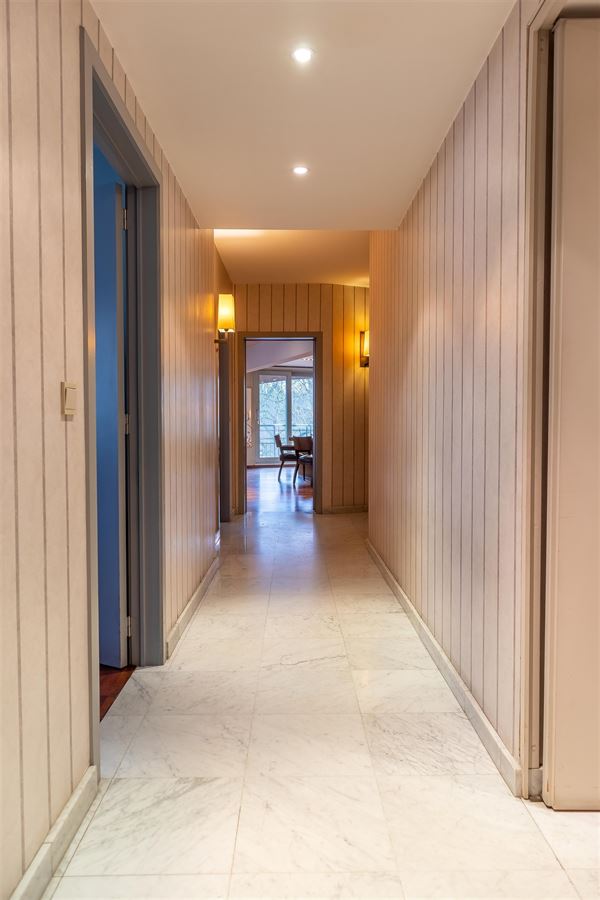 L'appartement se compose d'un hall d'entrée avec vestiaire et WC séparé, d'un grand séjour spacieux, d'une cuisine (non aménagée), de trois chambres dont une avec salle de bains attenante, d'un grand hall de nuit, d'une salle de douche, d'un WC séparé et d'un débarras. En plus de ses beaux volumes et de sa luminosité, le bien dispose de trois emplacements de parking en supplément : un simple à 30.000 et un double à 40.000 , avec possibilité d'en acquérir un quatrième. Une cave complète l'ensemble. À visiter sans tarder.
